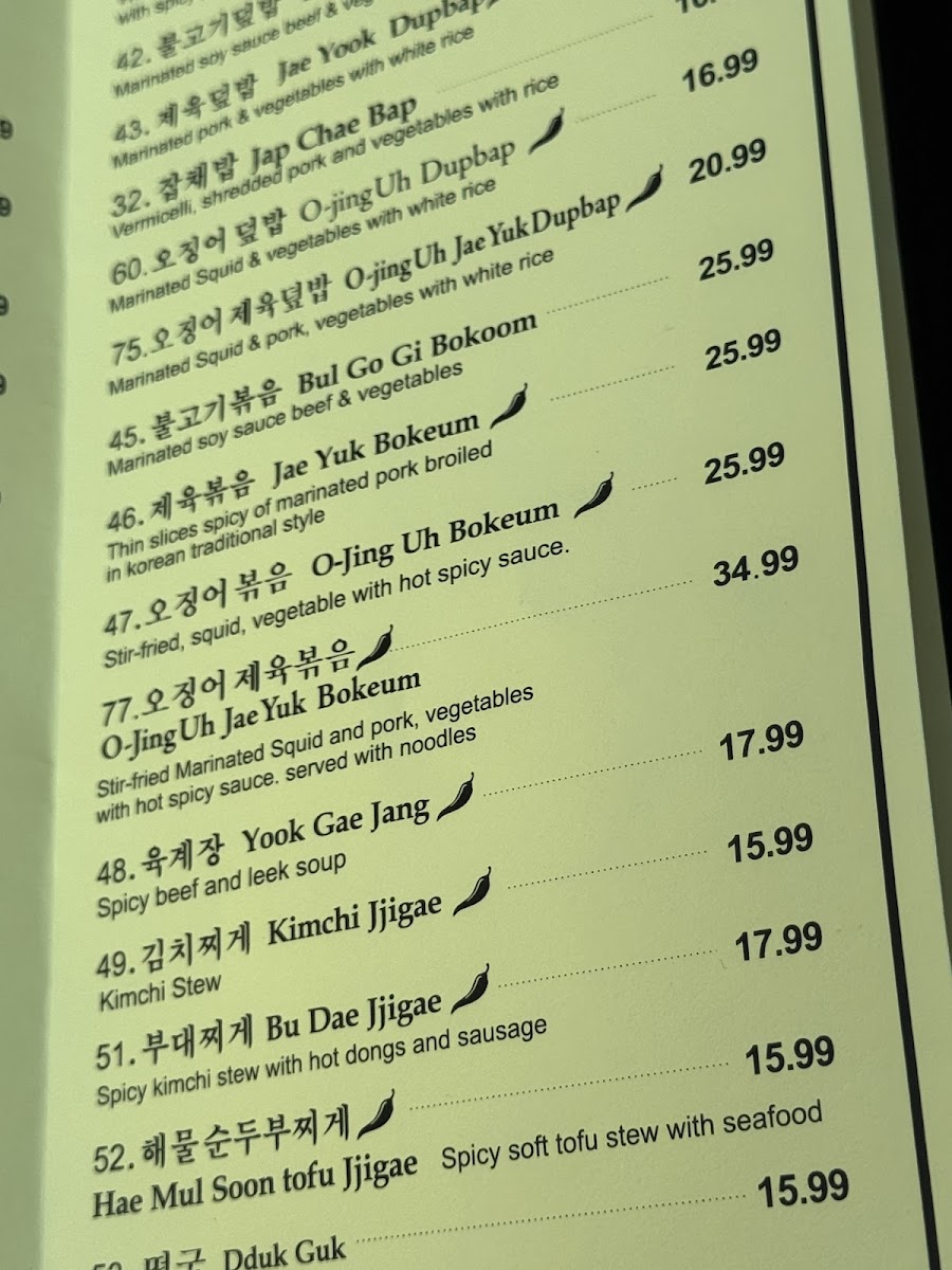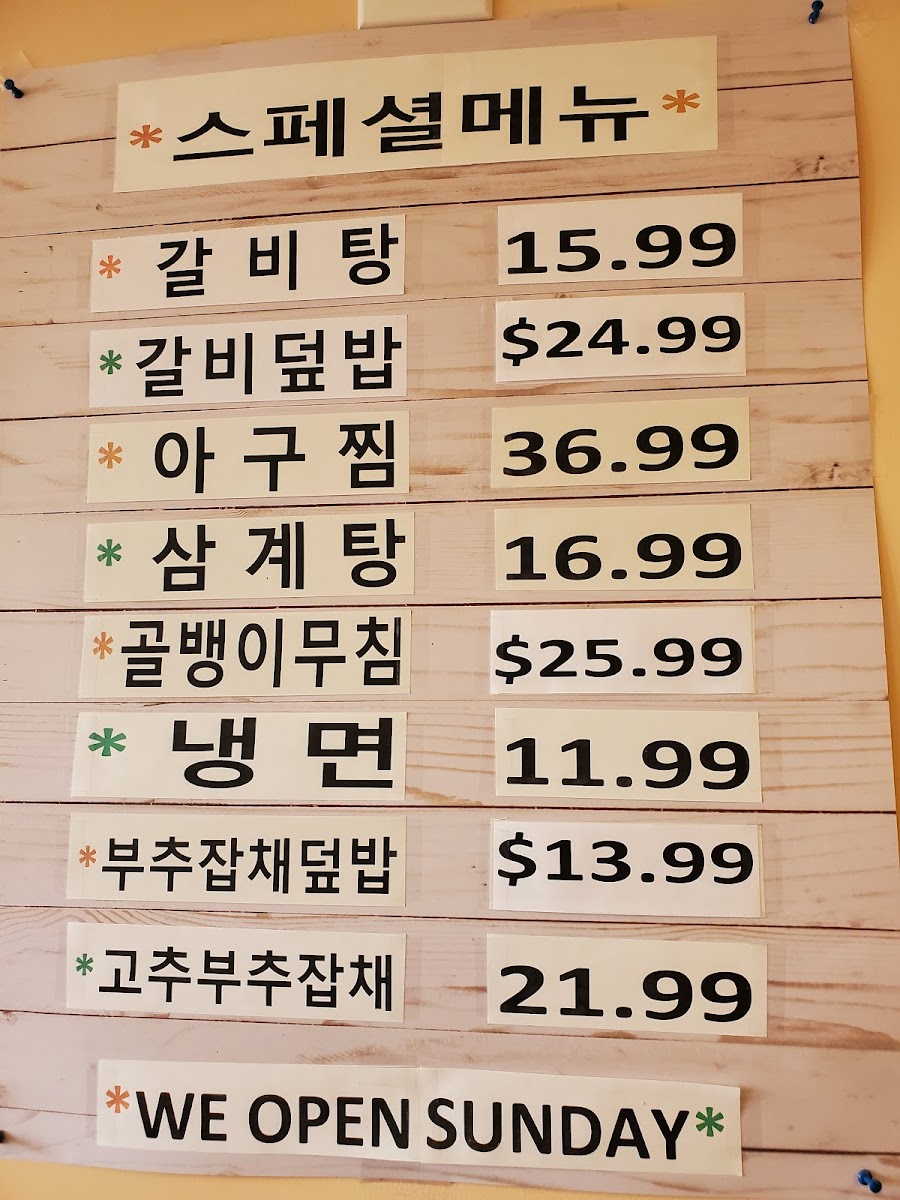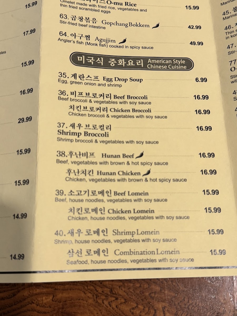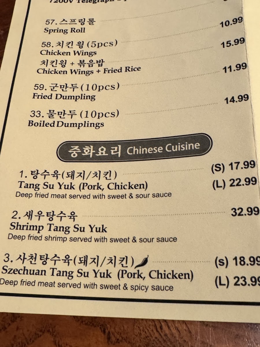 The menu is suitable for casual dining occasions, offering options for both quick orders and more extensive meals. Patrons can expect authentic flavors across Korean and Chinese specialties, with dishes that accommodate a range of appetites from light snacks to full entrees.
